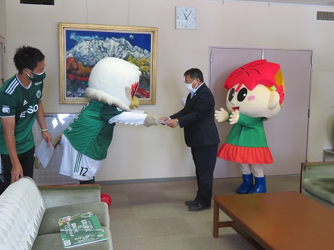 松本山雅FC ガンズくん 箕輪町表敬訪問